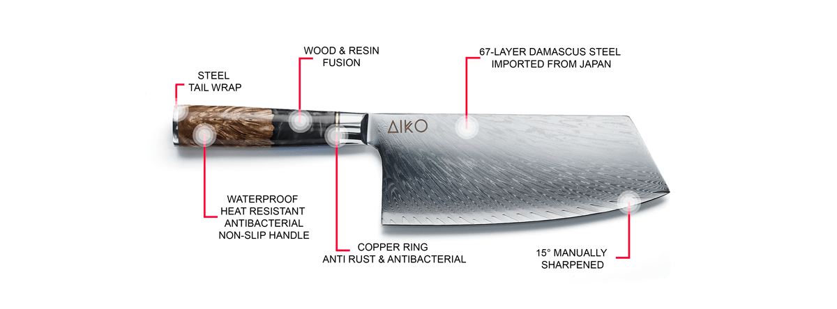 - Núcleo de aço japonês VG10 forjado de precisão para excelente desempenho e retenção de arestas.