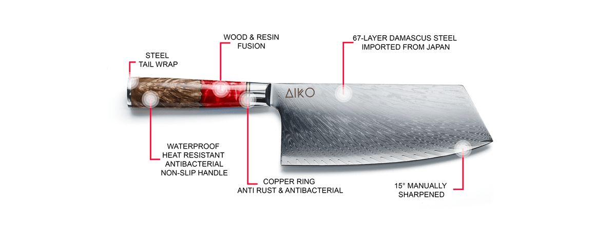 As facas da série Aiko Red (あいこ, アイコ アイコ) Damasco:
